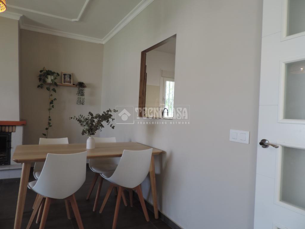El solar donde se entabla presenta una superficie de 560m2. Presenta una superficie interior de 110 m², ademas de porche cubierto. Esta propiedad se distribuye completamente en planta baja, contando con amplio salón con chimenea cerrada y window. La cocina es practicamente a estrenar y cuenta aun con garantia. Dispone de 3 Dormitorios, siendo el principal de gran dimensión y con amplio armario empotrado integrado. Las otras dos habitaciones también disponen de armarios empotrados. Cuenta con un amplio baño completo y bonitas zonas exteriores, con puerta peatonal y puerta corredera para coche.